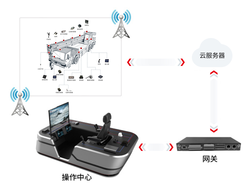 支持轉(zhuǎn)臺回轉(zhuǎn)控制、高度限位控制、變幅和卷揚控制。