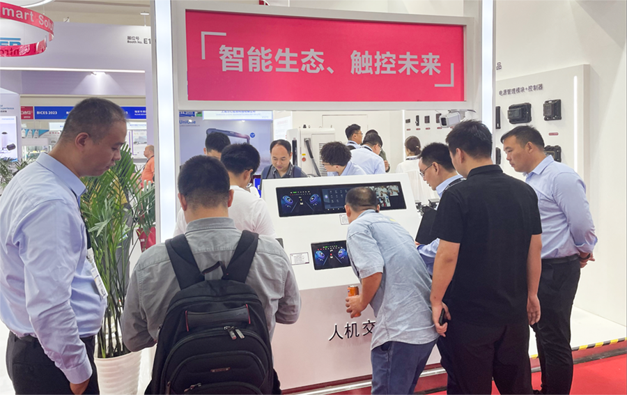 此外最為搶眼的還得數(shù)人機(jī)交互區(qū)域,最新的智能座艙系列產(chǎn)品、顯控一體機(jī)等設(shè)備,吸引眾多客戶(hù)駐足體驗(yàn)互動(dòng),設(shè)備不僅可實(shí)現(xiàn)上電即用,并且環(huán)境可靠性高,適用于各種惡劣環(huán)境,再配合智能按鍵面板以及電源管理模塊,可拓展更多用戶(hù)自定義功能,為客戶(hù)量身打造多元化的智能座艙場(chǎng)景。